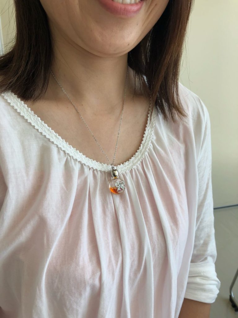 ほんとうにありがとうございます!今日作った、アロマペンダントはいくつかの精油から